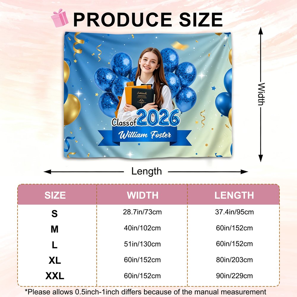Personalized Class of 2026 Photo Colorful Balloons Banner with Name and Year Graduation Ceremony Party Gift for Graduates
